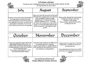 The club was fortunate in receiving a step by step guide to propagation and treated to a stunning slideshow of fuchsias prepared for the showbench and on display in Gareth’s beautiful garden.